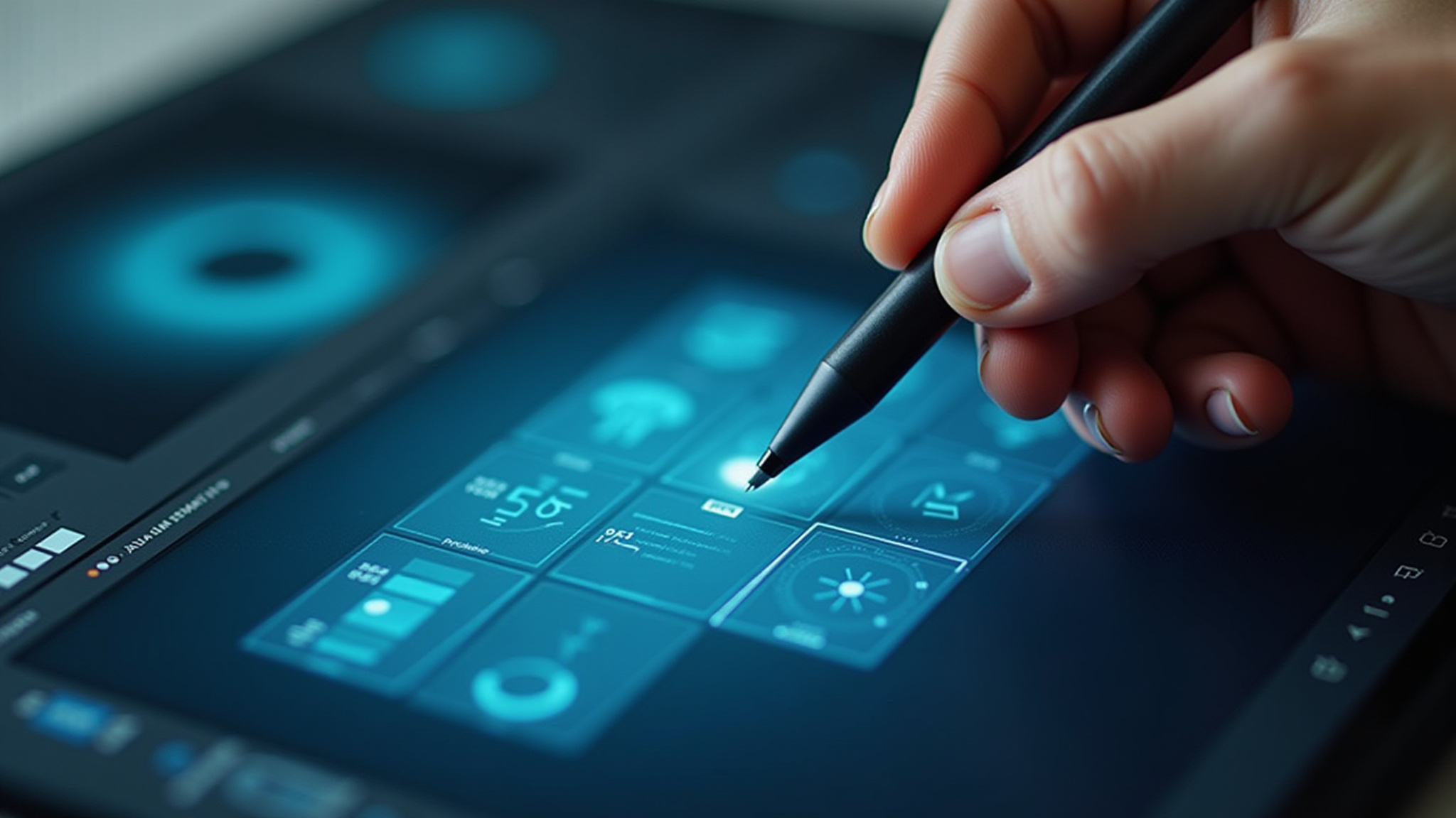 Deixe a sua imaginação fluir enquanto transformamos conceitos em realidade, exibindo cores em azul, preto e branco.